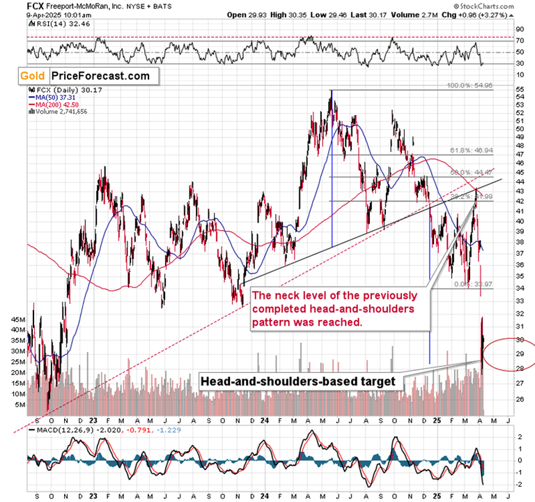 We’ll probably re-short it around $33 as that’s where we have the 2023 lows and the previous low before the massive price gap. My intuition tells me that FCX might want to try to close this gap before declining further.