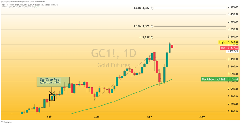 Since February 4, the astonishing rise in gold prices correlates directly with President Trump's aggressive tariff policies. Since the first tariffs against China were implemented, gold has gained approximately $323—with the vast majority of the increase since early February directly attributable to Trump's tariff program.