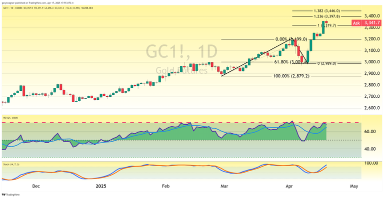 The most active June gold futures contract settled at $3,341.70, down a moderate $16 (0.47%) from yesterday's record high of $3,357.70. Traders showed a clear reluctance to maintain positions in both equities and gold, preferring to secure profits on gold trades and reduce risk exposure on equity positions that could potentially continue their downward trend next week.