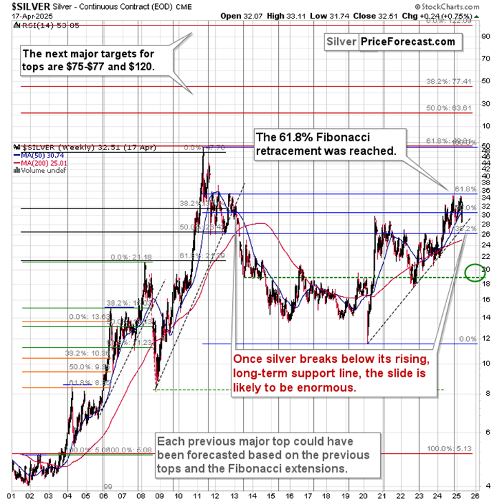Please note that the white precious metal barely moved above its 2020 high in 2024 and 2025 and last year’s high was just a test of the 61.8% Fibonacci retracement level – nothing more. The retracement proved to be a very strong resistance, and despite gold’s strong leadership, silver failed to break higher.