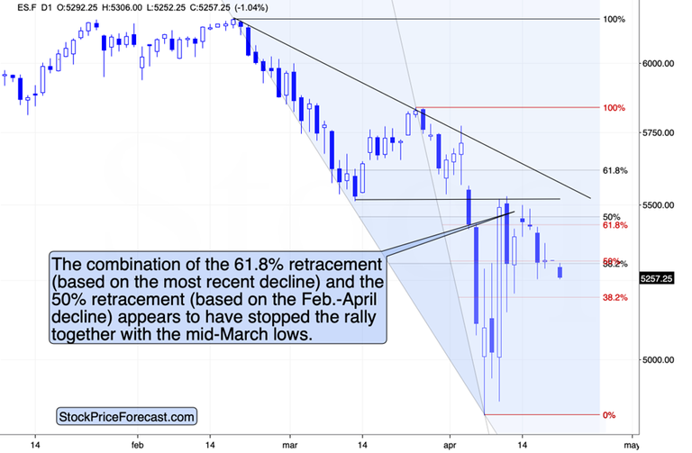 The S&P 500 Index futures are down in today’s pre-market trading. Not significantly yet, but the move toward last week’s lows suggests that the decline will simply continue here.