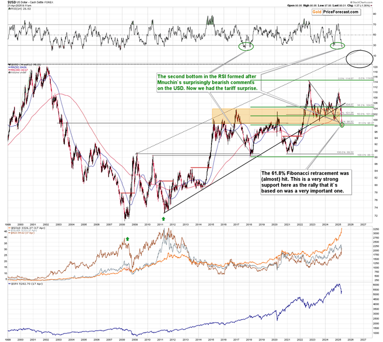 1. This decline took the USDX to the 61.8% Fibonacci retracement based on the 2008 – 2022 rally, which provides VERY strong support. It was only somewhat below the same retracement but based on the 2020 - 2022 rally.
