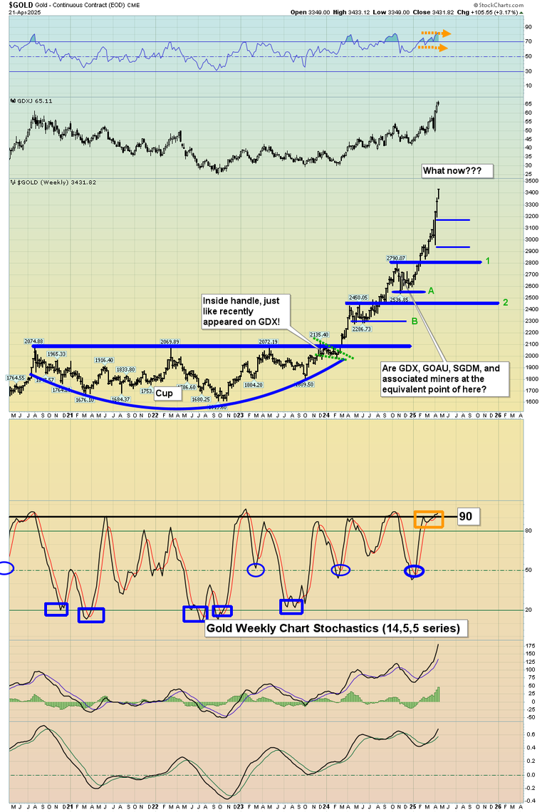 In the current situation, that would be about $3193. Having said that. Gold’s superiority versus fiat is so great that it’s generally a waste of time for investors to try to call fiat price tops for gold.