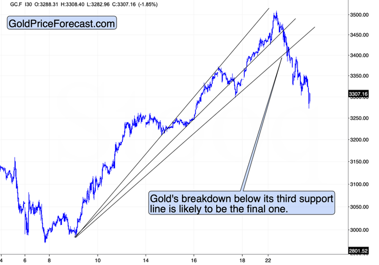 Gold broke below $3,400 and even quickly declined below $3,300 – the top is in.
