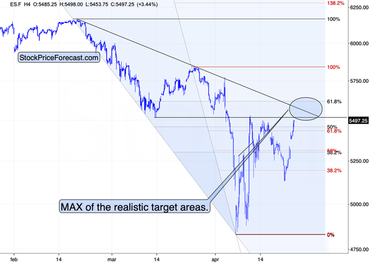 This could be the case, or they might rally a bit more before turning south again. I previously wrote about the 61.8% Fibonacci retracement as the likely maximum of the realistic upside target areas for stocks, and it’s just above the current S&P 500 levels. So, the upside is limited – the same goes for copper and FCX.