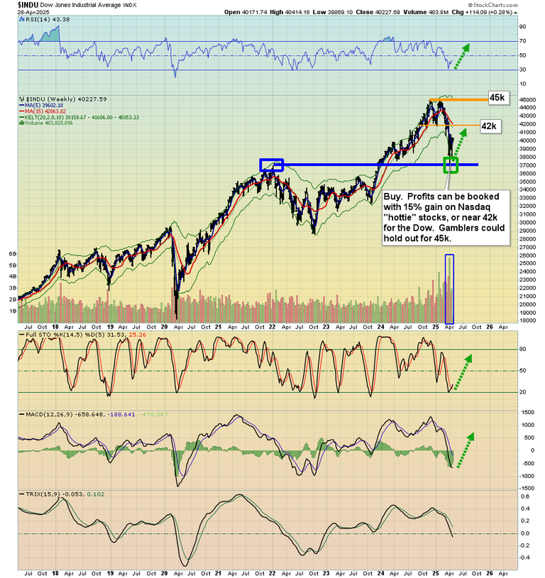 Double-click to enlarge this key US stock market chart. I urged stock market enthusiasts to buy Nasdaq “hottie” stocks if the Dow dropped from 45,000 to 37,000… which it did.