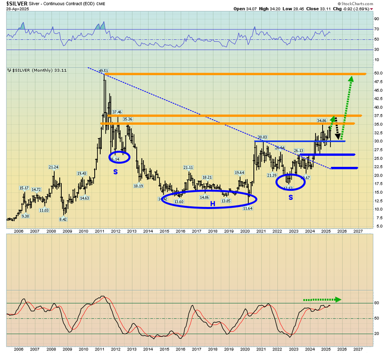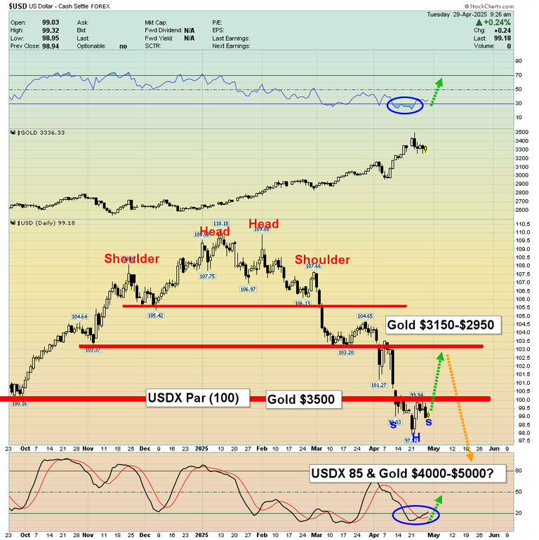 I suggested the dollar would drop to par from the H&S top and gold would trade at $3200-$3500 when that occurred.