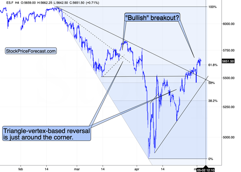 As I explained yesterday, the stock market has its own triangle-vertex-based reversal point, which is due early next week. Consequently, the current pause after a rally is quite natural. We’re still likely to get a (likely big) move lower next week.