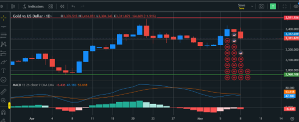 As we move further into May, gold’s outlook remains closely tied to a mixture of macroeconomic data, market sentiment, and central bank policies. Today’s positive unemployment claims data and Trump’s optimistic statements about the U.S. economy have placed downward pressure on gold, with the market showing a preference for riskier assets like equities. However, Trump’s calls for further rate cuts, alongside the Fed’s cautious stance, keep the door open for potential gold price increases in the future. The gold market’s sensitivity to U.S. economic data—especially inflation data—will remain paramount in the coming weeks.