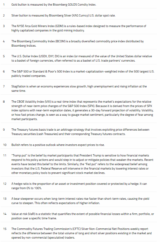 * BPS stands for basis points. **ETF holdings are measured by Bloomberg Indices; the ETFGTOTL is the Bloomberg Total Known ETF Holdings of Gold Index; the ETSITOTL is the Bloomberg Total Known ETF Holdings of Silver Index.