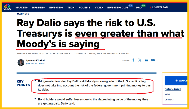 Hedge fund manager Ray Dalio is clearly concerned. It’s clear that Moody’s should have downgraded US debt 15 years ago, and a convincing argument can be made that the debt deserves no more than a CCC- rating today.
