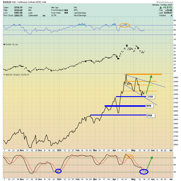 - Note the great position of the key 14,7,7 series Stochastics oscillator at the bottom of the chart. Like gold itself, it’s the most oversold since the start of this year.