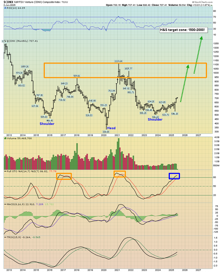 - Of those 20, 19 were miners. The inverse H&S pattern is massive. It targets the 1500-2000 zone for the CDNX, and that should see a myriad of individual mine stocks stage 10 and 20 bagger surges on their own charts.