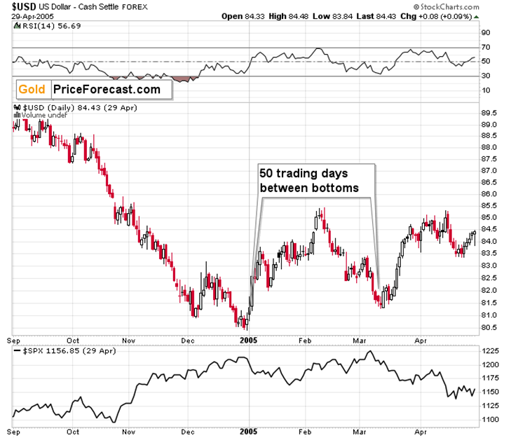 In 2005, the bottoms were 50 trading days apart.