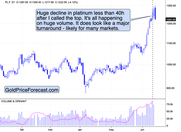 Meanwhile, platinum appears to have topped, just as I had indicated less than 48 hours ago.