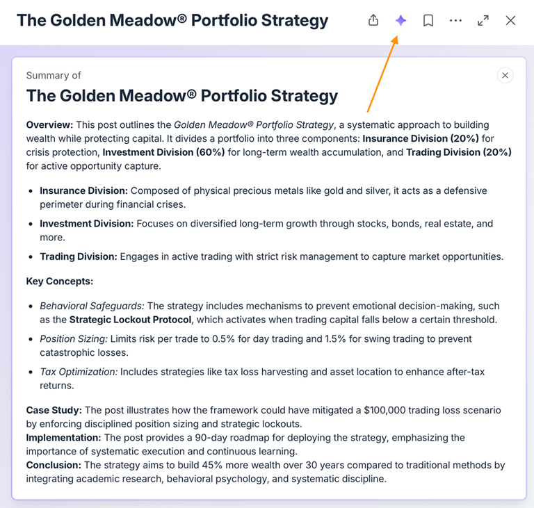 On a side note, have you noticed that all texts on Golden Meadow® now have that diamond/star icon in the top right corner? It gives you an AI-generated summary of the text. The same thing is available for the comments feed.