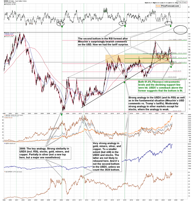 Is the U.S. collapsing here? Of course, it’s not. Despite the current sentiment, please keep in mind that the USD remains the world’s reserve currency, the U.S. has the world’s most powerful economy (think about the key global tech and AI players) and the world’s most powerful army. Please also keep in mind that the U.S. tariffs are fundamentally bullish for the U.S. dollar.