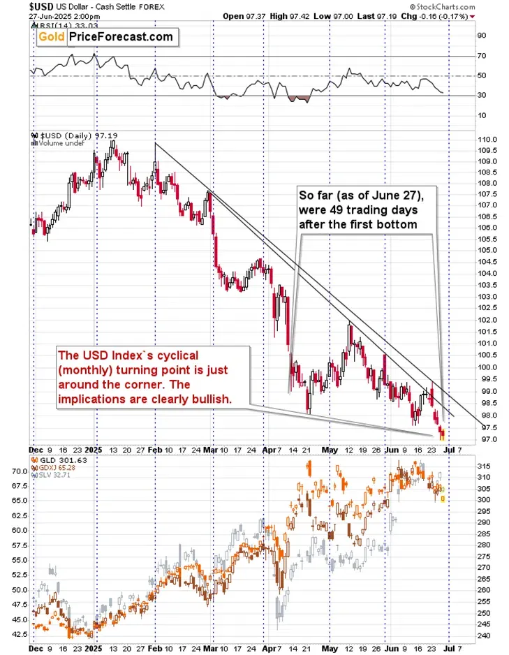 Also, please remember that when the USD Index finally rallies (also as per Trump’s Art of the USD), the decline in gold and silver is likely to accelerate and the declines in multiple commodities will either start or pick up pace.