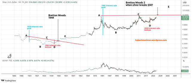 It is likely when silver crosses the $50 barrier, we officially enter reset territory based on the similarity of the silver chart to the 1940s when the Bretton Woods agreement was formed.