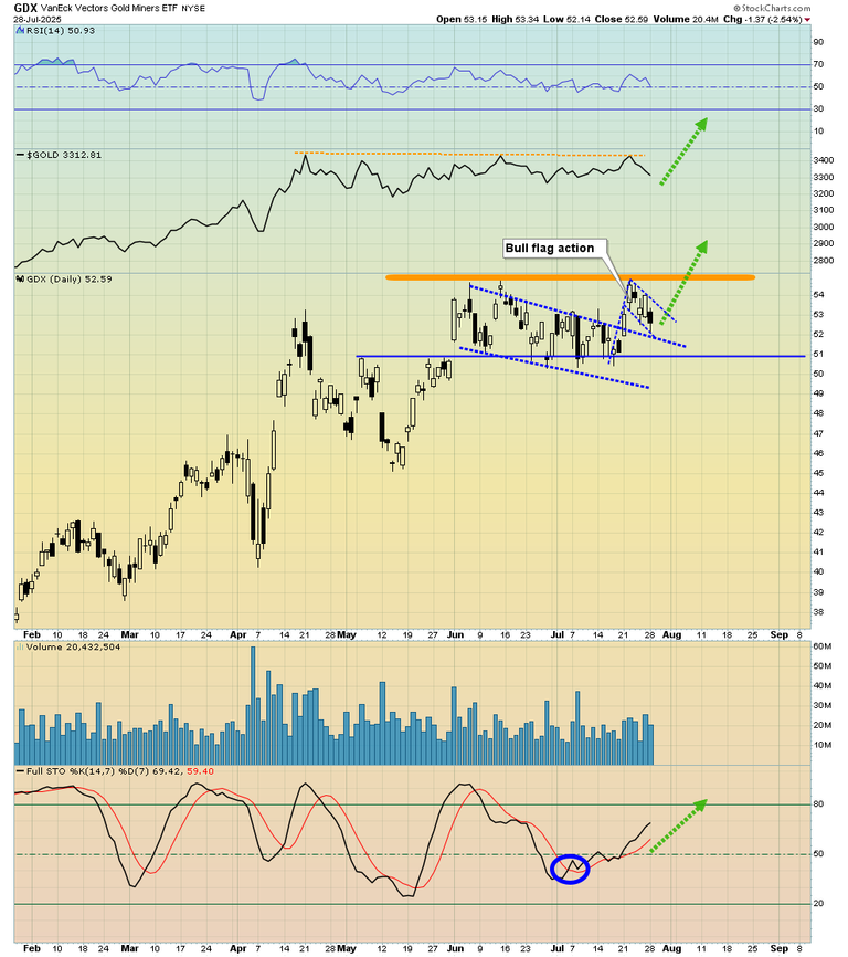 - In fact, there’s some decent bull flag action now in play. GDX is starting to act as it should…