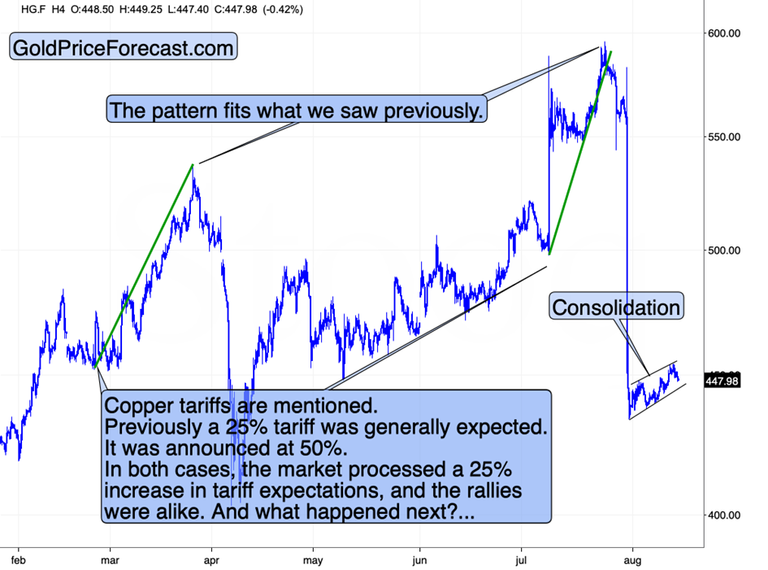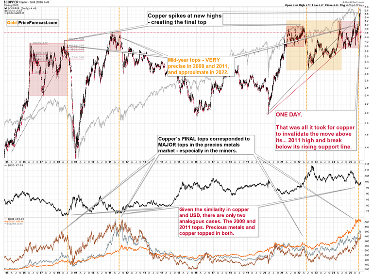 Also, since big moves in copper tend to be aligned with big moves in gold and silver, it’s likely that we’ll see bigger declines shortly.