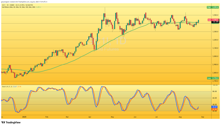 December gold futures prices surged 0.95% to close at $3,443.20 per troy ounce by 5:30 p.m. ET, marking the highest trading level since August 11. This impressive climb was primarily attributed to safe-haven demand triggered by political developments affecting the Federal Reserve's governance structure.