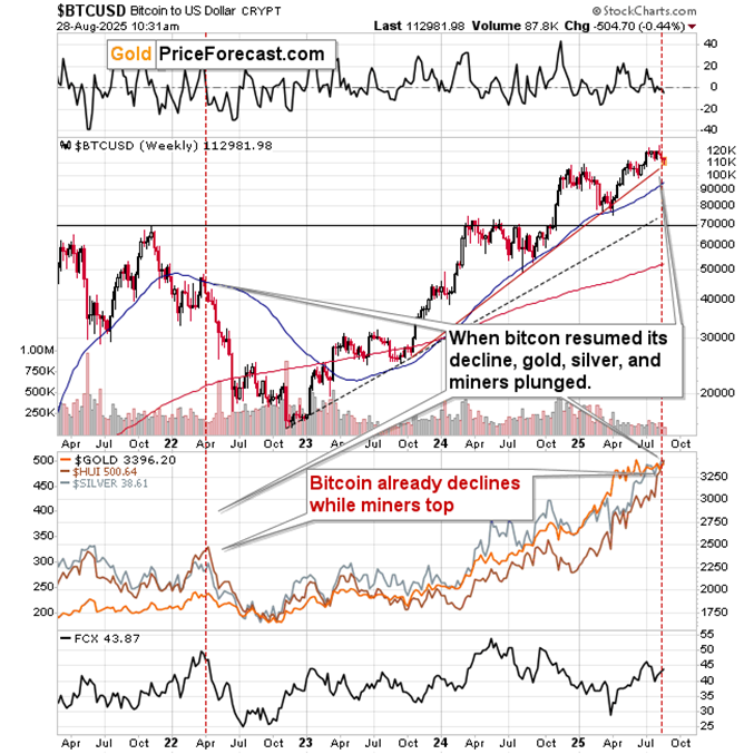 We saw something like that in 2022, when the precious metals market was topping. In particular, miners were strong right before their huge decline.