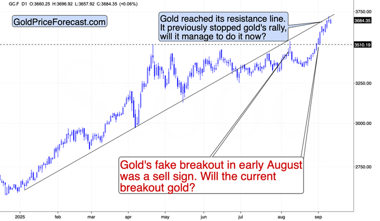 However, given the current bullish setup, I wouldn’t be surprised to see a rally in the USD Index even before the rate cut. This, of course, would likely trigger declines in precious metals and mining stocks.