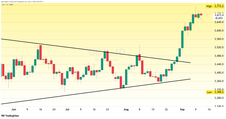 Precious metals markets have responded to these developments with characteristic sensitivity to monetary policy expectations. Gold futures experienced a modest decline, falling $8.40 or 0.23% to settle at $3,673.60 per ounce. Despite this minor pullback, gold continues to trade near record levels, supported by widespread anticipation of an accommodating Federal Reserve policy stance that could reduce the opportunity cost of holding non-yielding assets.