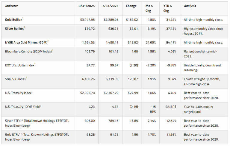 Gold Breakout: Gold, up 31% year-to-date through August, looks to be breaking out from a months-long consolidation phase. Since closing the month at $3,347.95 per ounce, gold has topped another all-time high, rising above $3,600 per ounce.