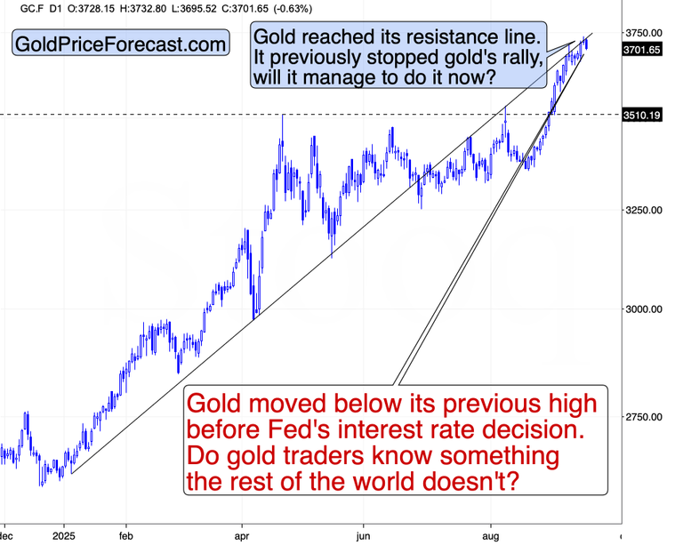 Gold’s decline is not that big when compared to the size of the recent rally, but gold moved below its previous yearly high – could be the sign of things to come.