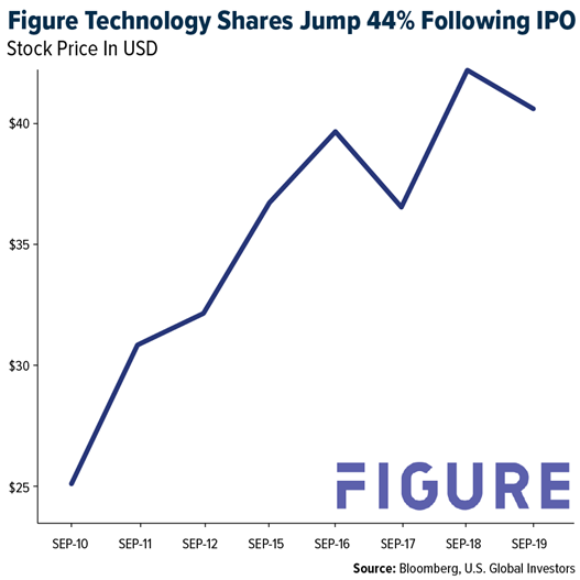 - Figure Technology Solutions shares opened 44% above their IPO price after raising $785.5 million in its listing. The opening price gives the company a market value of approximately $7.6 billion based on outstanding shares. It develops blockchain technology to facilitate loans, according to Bloomberg.