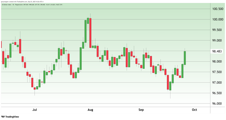 This reinforced the recent uptick in U.S. dollar strength, which gained 0.62% in trading yesterday and matched those gains today. This puts the dollar index well above 98 at 98.483. If the dollar holds near current pricing, it will represent the highest closing price this month. This represents a dramatic shift in the dollar as it had just hit its lowest trading point this month a little over a week ago when it traded to a low of 96.21 last Wednesday.