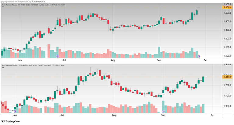 This newfound strength in the dollar was not enough to bring about a crash in the precious metals, all of which closed higher today. Gold futures gained $12, most of which came in after-hours trading. This brought futures prices up to $3,780.50, up 0.32% on the day.
