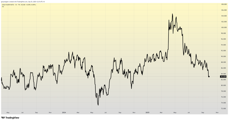 We have long been expecting silver to catch up to gold, and it has recently begun to close the gap. The gold/silver ratio dropped by 3% today, now sitting at 82.89, closing at its lowest value so far in 2025. The ratio, which compares how many ounces of silver are required to purchase an ounce of gold, hit its lowest level on record back in 2011, during the last occurrence of silver breaking above $40.