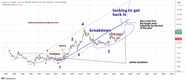 We are about halfway in this decade after the mega interest rate bottom, and silver is now really starting to pull away: