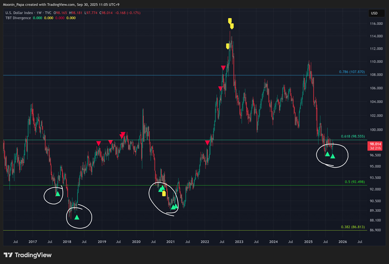 The US Dollar Index (DXY) registered a second weekly TBT bullish divergence, historically signaling key pivot lows since 2017. A rising DXY typically pressures equities; with two remaining Federal Reserve meetings expected to deliver rate cuts, the question remains whether the stimulus is sufficient amid rising unemployment and falling consumer spending. Should the US stock market enter a downturn in early 2025, cryptocurrency markets could face significant headwinds. Meanwhile, major indices (S&P 500, DJIA, NASDAQ 100) continue to climb, warranting vigilance as VIX remains below the 22.00 worry threshold. In Asia, the Shanghai Composite and Hang Seng have printed bearish divergences, adding to global risk concerns.