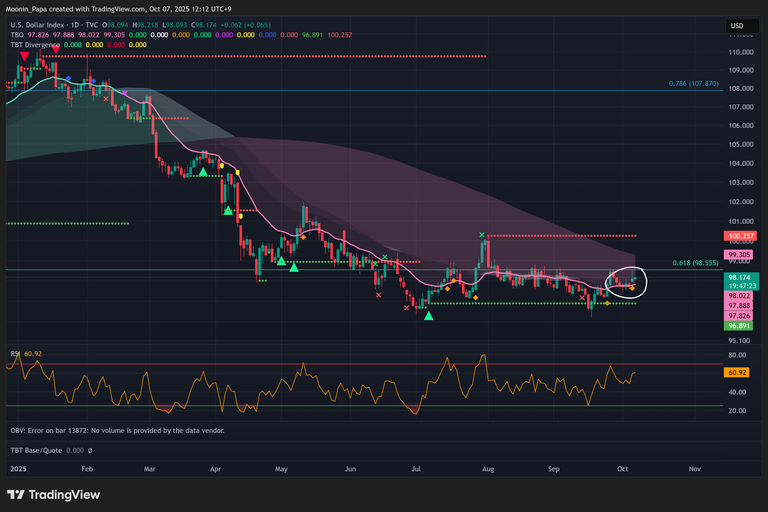 The US dollar index printed a TBO close-short signal on its daily chart, marking another potential bullish reversal that could pressure risk assets. Meanwhile, the S&P 500 trades at the 1.272 Fibonacci extension of this year’s tariff-sell-off range and recently formed a breakout cluster—raising the possibility of further gains toward 7,500, particularly in a historically bullish Q4 environment. Low VIX levels suggest minimal investor fear, and the Nikkei surged over 4% on pro-Japan political developments.