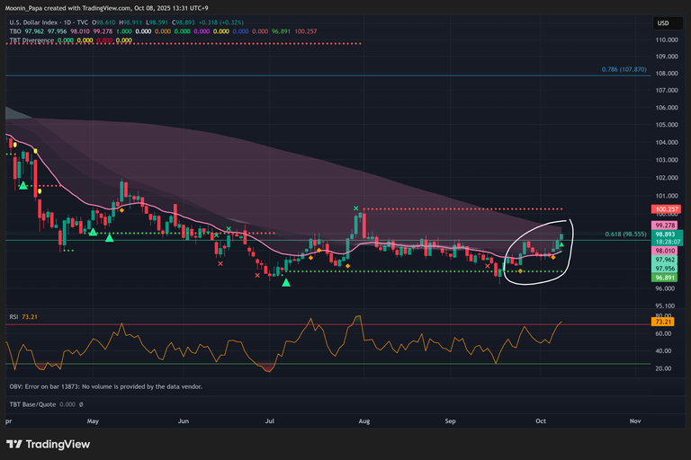 The US dollar index (DXY) is trading above its 0.618 Fibonacci retracement and is on the verge of a TBO Open Long, a first since October 2024. S&P 500 futures remain near the 1.272 Fibonacci extension and have yet to reflect dollar strength. Meanwhile, the FANG index posted a second TBT Bearish Divergence, and Nvidia is printing a similar weekly divergence. The VIX is gradually moving higher, signaling increased volatility risk across asset classes.