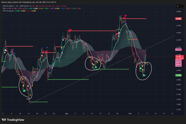 Combined stablecoin dominance spiked by 4.7%, indicating a short-term pullback rather than a deeper liquidation. Bitcoin dominance remains in bullish consolidation within its daily TBO Cloud, targeting a move toward 61%. In contrast, Ethereum and Solana dominance charts show weakness—SOL.D confirmed a TBO Cross Down—while OTHERS.D closed below support. If Bitcoin reclaims $126,000, we expect stablecoin dominance to fade back toward 5% before rising into next year’s bear market.