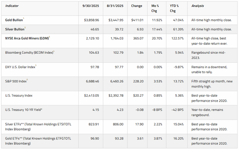 Gold Hits Record Highs: Gold surged nearly 12% in September to an all-time high of $3,859 per ounce, up 47.04% year-to-date, leading all major asset classes.