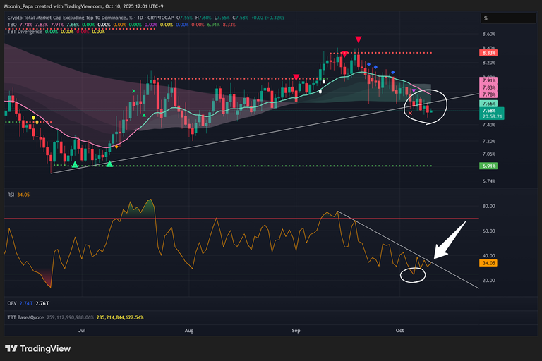 Other protocols dominance (OTHERS.D) remains bearish below the daily TBO Cloud despite a minor RSI reset hinting at a possible relief bounce. The TOTALES.D weekly chart is printing a TBT Bearish Divergence cluster akin to the April 2021 and 2018 tops, with weekly RSI making lower highs since November 2024. Though hidden bearish divergence may not preclude further gains, these signals underscore that this bull cycle may be in its final stretch.