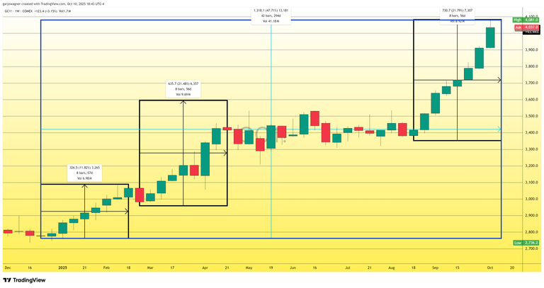 Gold futures had impressive gains today last seen up $44.40 or 1,11% back above $4,000 at $4,035.50. The gains are impressive not simply by their magnitude but because almost all other markets traded dramatically lower. The Nasdaq fell by 4.39%, The S&P 500 lost 3.41%, and Bitcoin had been down over 9% but is recovering now down only 6.16%. Even the other precious metals were not spared from today’s sell off.