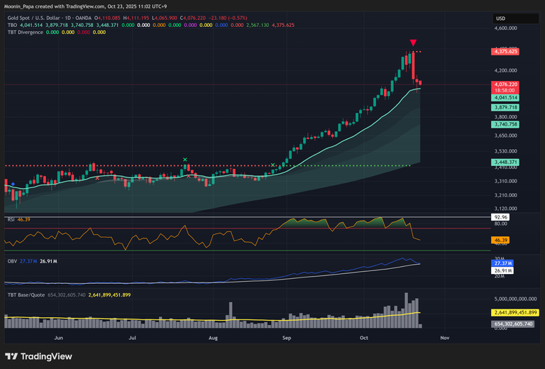 In traditional markets, WTI crude oil retraced to four-hour TBO support near $57.26, setting the stage for a potential short-squeeze rather than further decline. Gold continues to trade below its daily TBO fast line despite maintaining bullish structures on both daily and weekly timeframes, raising questions of a pause or blow-off top. Silver has yet to rebound after OBV crossed below its moving average on a red close, though both metals retain the potential for renewed upside momentum.