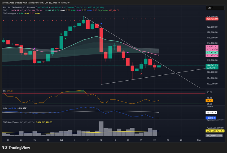 Bitcoin has yet to clear its immediate overhead resistance but traded with elevated volume relative to its moving average, signaling sustained market interest. Volume outperforming the yellow MA line suggests readiness for renewed momentum; conversely, subdued volume would indicate waning participation. The current roadmap anticipates a successful breakout and a rally toward $114,000, consistent with earlier predictive wicks.