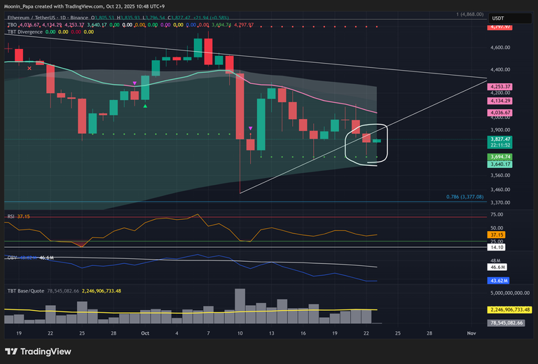 Ethereum closed below short-term support and now resides in a bearish consolidation phase marked by choppy, lower-low price action. A bullish turn requires reclaiming and holding above $3,900. Should Bitcoin execute its breakout, Ethereum will likely follow; however, the ETH/BTC pair exhibits no signs of turning bullish and will remain under pressure if BTC accelerates higher.