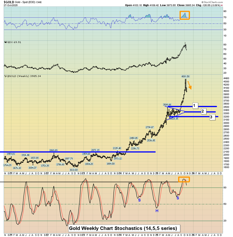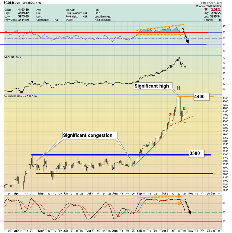 1. The metals market continues to recoil from the big round number zones of gold $4000, silver $50, CDNX 1000, and GDXJ $100. Of course, nothing fundamentally has changed for gold…