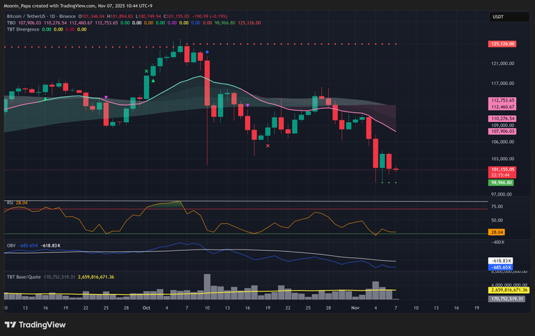 To reassert bullish control, Bitcoin needs significant buying volume to lift and hold price above $103,000. A lower low today would weaken the prospects for a push into the four-hour TBO Cloud resistance. Traders should watch for decisive daily closes above $103,000 or conversely for breakdowns below $100,000 to define the next directional bias.