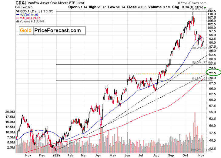 Yesterday’s intraday reversal in the GDXJ was also telling – a classic bearish sign. Bulls just couldn’t withstand the selling pressure.