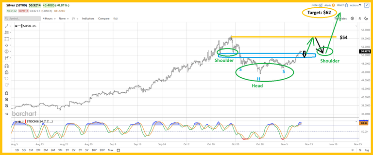 15. What about silver? Silver looks technically superb. There is also substantial inverse H&S formation in play, and the target of the pattern appears to be about $62.